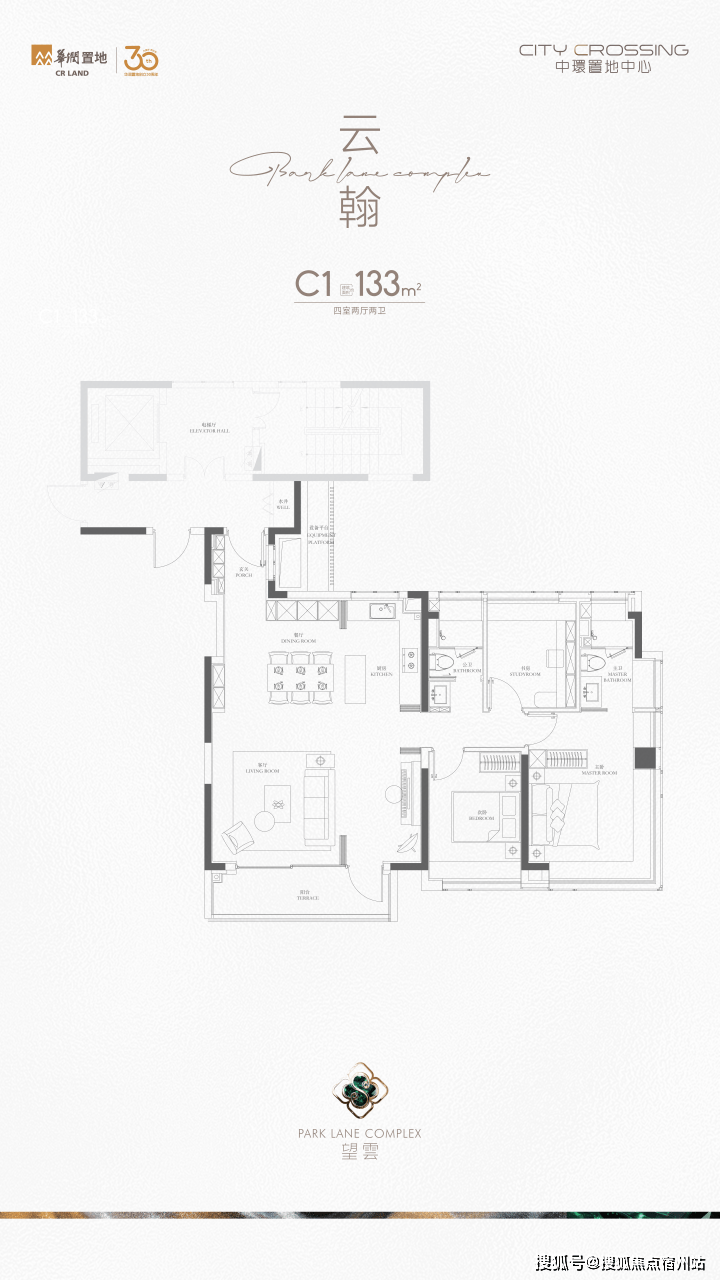 133㎡可以说是108㎡的进阶款,同样的三房两厅两卫,大面宽横厅、半开放式厨房设置岛台,加上主卧L型飘窗,再一次验证了华润置地豪宅化的产品思路。