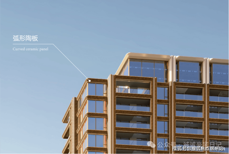 全景立面上“二十窑成一器”的 陶管,由紫砂世家第五代传人夏志平携手定制,复刻宋代官窑技艺,为了勾勒出独特的“ 璞元之弧”,项目独家定制五种截面陶管,以最新工艺实现双曲弯弧造型,每一片皆是非标异型的匠心孤品。