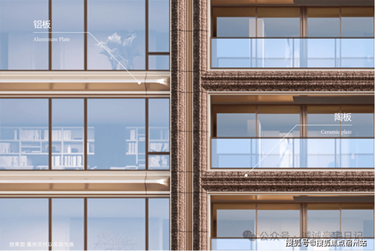 建筑四面均采用铝板+玻璃+定制陶艺,历经百次试烧锻造鎏金陶板,成就上海唯一国际东方艺术全景立面,每面皆城市封面,整体采用非对称的结构设计,回应上海东西方文化交融碰撞的城市美学。 大胆采用四排楼布局,以保证户户通风采光, 类一梯一户无连廊设计,将入户私密性做到极致。