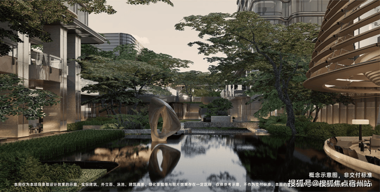 从主入口水院,弧形桥、游艇绿洲泳池,均以润物细无声的方式,让艺术融入生活,为生活而服务。