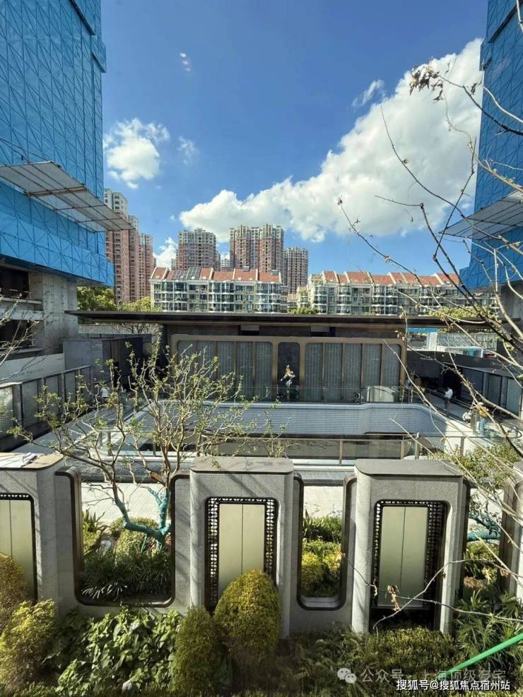 项目利用 下沉式景观庭院,结合艺术花园、摩登水景 等,打造了一座高端的下沉式会所,规划设有 泳池、健身房、行政酒廊 等场景。