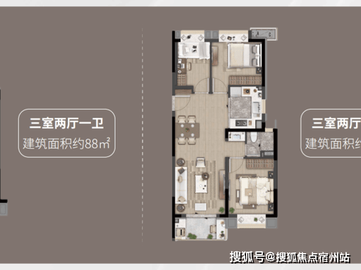 三、爆款户型|72-88㎡全周期空间,高得房率适配全龄需求