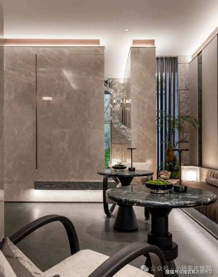 项目在奢石上的运用,不止于外立面,更延伸至社区的每一处角落。
