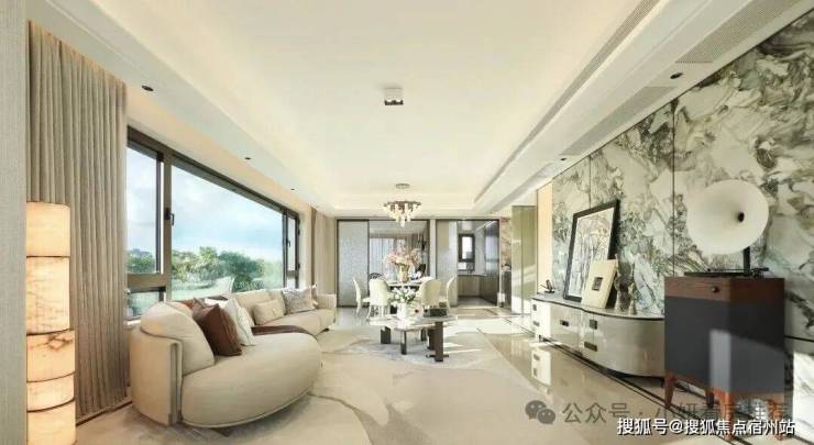 室内同样体现“高浓度奢石”,建面约184㎡户型地面采用保加利亚黑和奥特曼米黄石材,辅以无缝水刀拼花工艺。每一步细节,都在宣告着项目的长期价值。