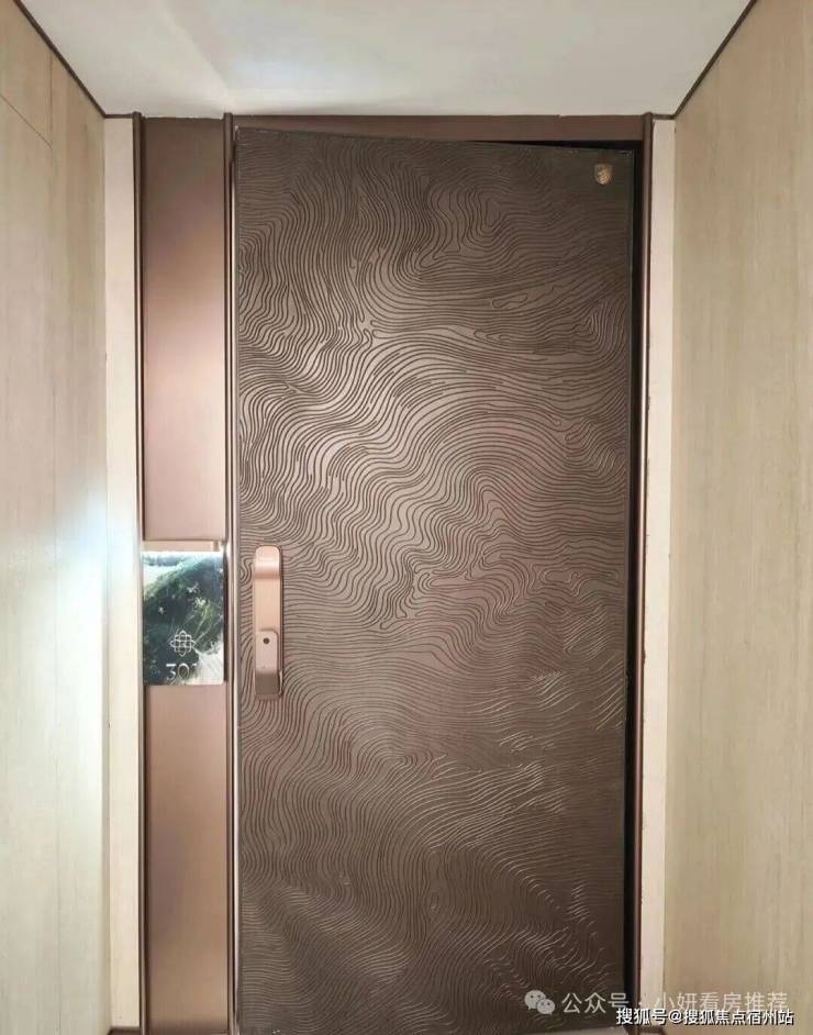 实景电梯厅铺设梵高印象岩板,电梯轿厢选用冷翡翠大理石。