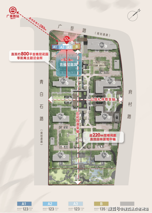 1、楼间距更开阔,离地铁更近:它的南北楼间距超过约52.6米,比首开的8号楼栋更宽敞。关键的是,它几乎是离在建的20号线广泉路站最近的楼栋之一。等小区交付,地铁也差不多通了,这种“无缝衔接”的便利度,懂得都懂。