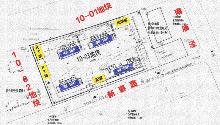 根据设计方案显示,10-03地块规划:拟建2栋15F高层住宅、2栋16F高层住宅、以及若干配套用房,规划住宅套数下限263套。
