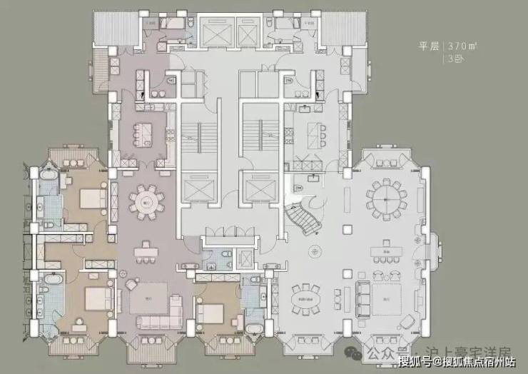 住宅部分全部大平层(复式)设计,单套面积约370-1500㎡,全部精装交付。