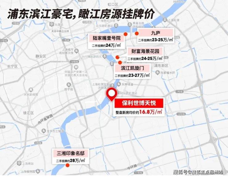 又比如二手房市场,浦东滨江豪宅中高区瞰江房源挂牌价普遍高达23-28万/㎡