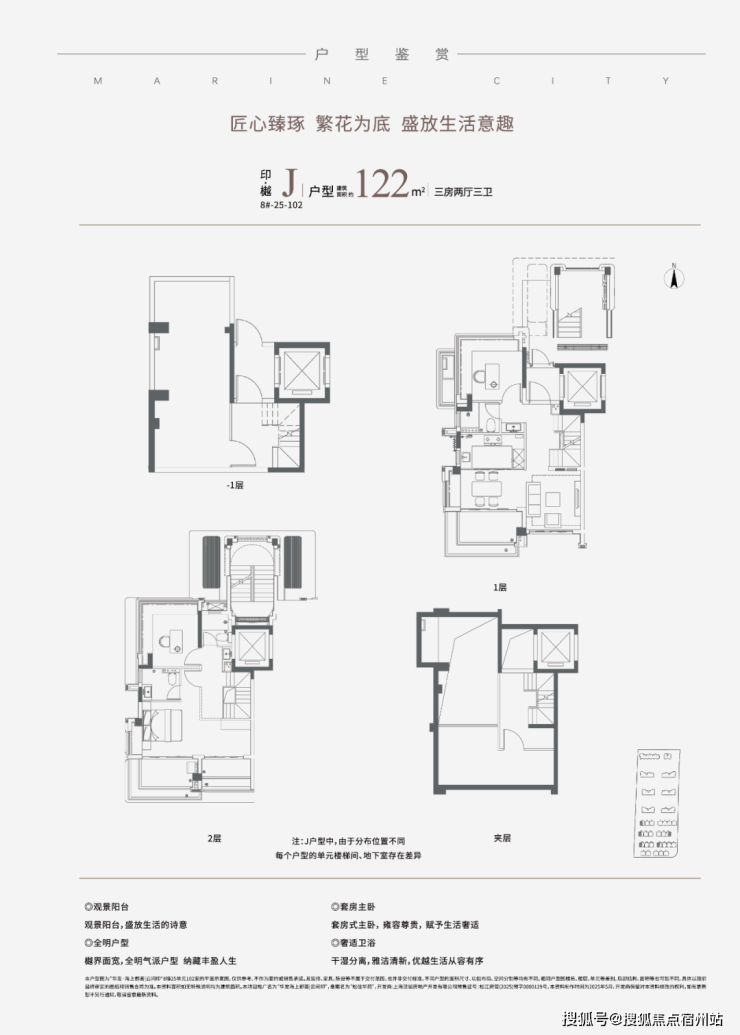 部分建面约100-101㎡H边厅户型,全景阳台搭配主卧L型转角大飘窗,三面采光+270°环幕视野,景观面堪比市区滨江顶豪,白天远眺松江人文,晚上看脚下星火流淌,十分惬意。