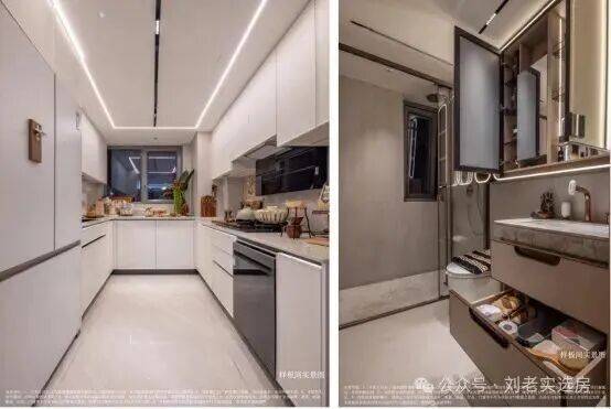 设计深度贴合日常需求,让精装不止于“豪”更在于“舒”。厨房采用人体工学高低台布局,烹饪区低于水槽区,契合手臂自然下垂的舒适角度,让烹饪动作行云流水,大幅减轻家务疲劳。更精准捕捉女性需求,卫生间专门配备 科勒美妆龙头、美 妆镜柜、美妆冰箱,搭配“顶+面双补光照明”,将“女本位”关怀落到细节,这般细致在同类项目中实属难得。