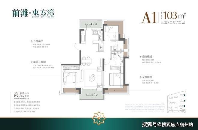 户型建筑层高3.1-3.15米,无连廊,双阳台配置。其中建面约103平户型2梯2户,其余一梯一户。永泰三里城售楼处电话:400-8894-638(欢迎光临)