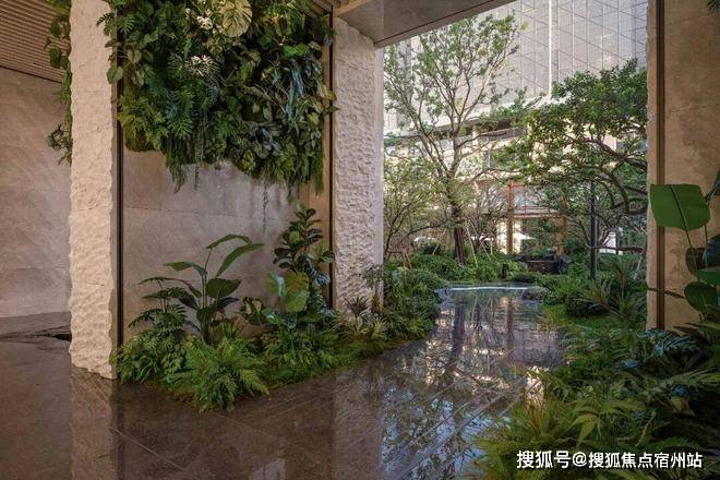 藤蔓沿墙垂落,水流自然流入,花草在架空层间摇曳生姿,✅✅贝涟C1售楼处电话:400 - 8824- 258✅✅使这一开放场域成为生机盎然的灵动空间。