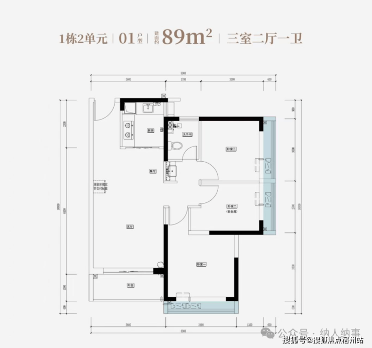 <横厅三房>主力三房户型,两开间竖厅动静分区