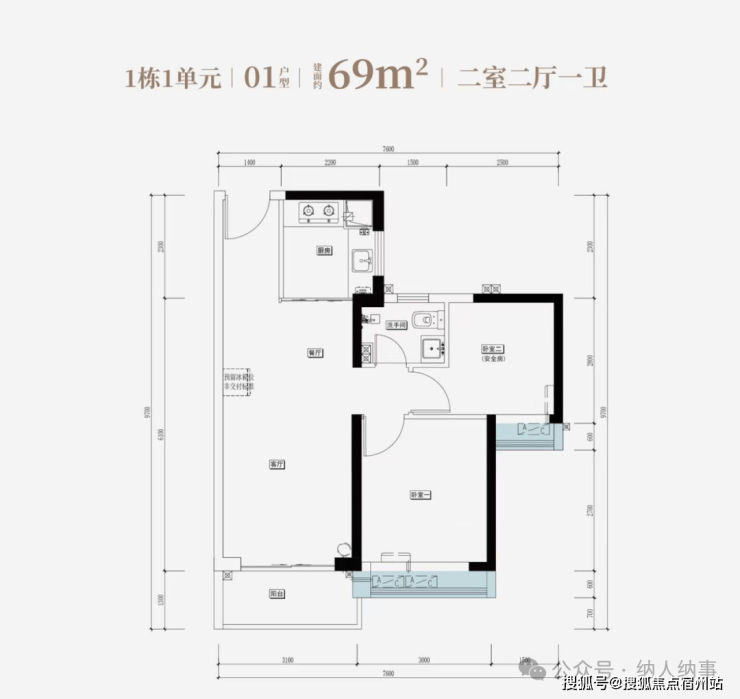 ——两种户型都是动静分区的竖厅两房,卧室会比较安静,目前看户型图卫生间很难做到三分离。