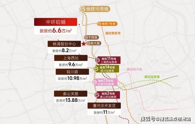 中环铂樾坐拥15号线南大路站(直线约300米),真正实现“地铁到家”的便捷生活。从这里出发,4站畅达上海西站(新房均价9万+/㎡)、5站轻松抵达铜川路(新房均价10万+/㎡)、9站直达娄山关路(新房均价13万+/㎡),轻松串联城市核心板块。此外,15号线更可快速换乘2/7/11/13/14号线,无缝衔接大宁、虹口、陆家嘴等繁华商圈,商务出行、休闲娱乐皆高效无忧。