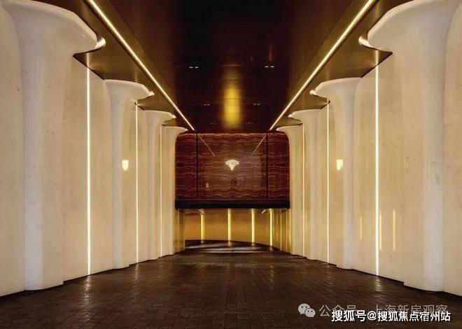 6、社区含“奢材”量很高。门庭延街的外立面,以精工定制弧形米色石材为主调,镶嵌典藏级老虎玉大理石,点缀古铜色现代海派艺术感灯器,整体呈现出百年海派的贵雅气质。