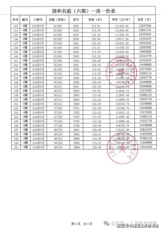 一房一价表如下