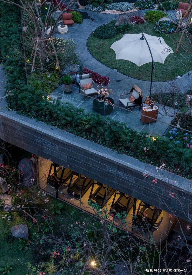 而在3、5号楼之间,则搭建了【围炉夜话】场景空间。古木纹奢石砌成的火炉旁,整木炭化石凳散发着山林野趣,一株红舞姬枫树翩然伴舞。冬日傍晚,好友围坐,体会名门温情。