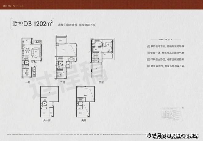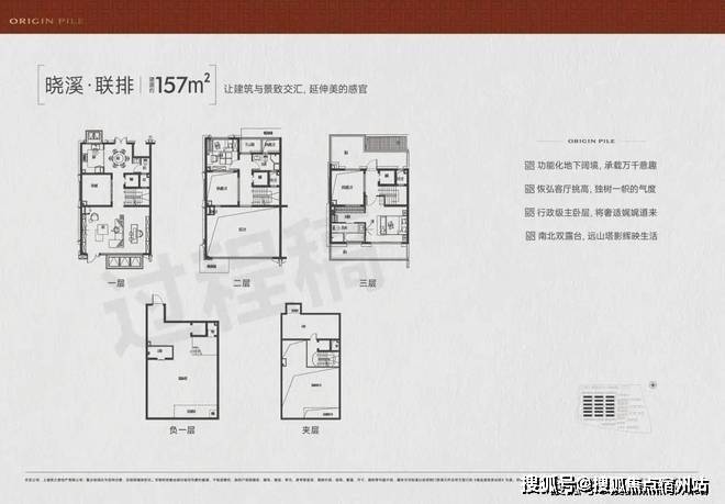 联排地下室层高约5.65米,首层约3.3米,二层3.15米,三层3.15米,外立面采用干挂石材+大面积玻璃+局部铝板线条等!
