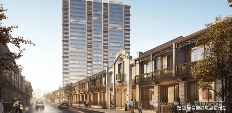 其中高层外立面昭示性十足!采用仿红砖陶板、优美柔和的设计元素、白色石材窗板以及古铜色金属线条设计,实现海派复古与现代建筑美学碰撞的艺术,颜值满分!