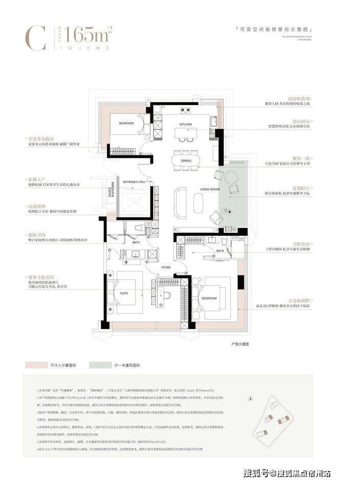 约165㎡户型超越行业常规,提供了空间、皮肤、功能、艺术化四大定制系统