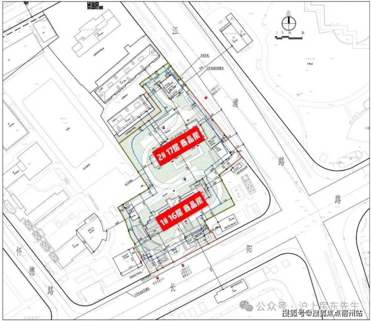 人行出入口、车行出入口、消防出入口,设置在南侧长阳路上,并设置1个临时上下客停车位;西侧江浦路设置人行出入口兼顾消防出入口