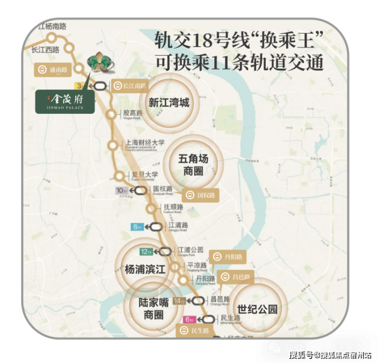 上海TOD金茂府首作,18号线通南路站地铁上盖真正实现"零距离轨交生活",待通车后,将串联上海核心资源。