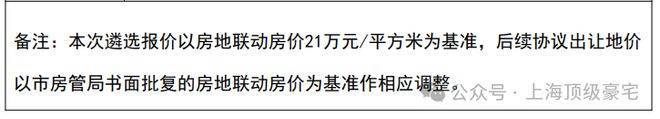 同时本次遴选报价以房地联动房价21万元/平方米为基准,后续协议出让地价以市房管局书面批复的房地联动房价为基准作相应调整。