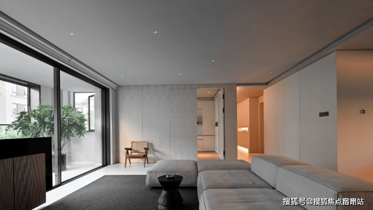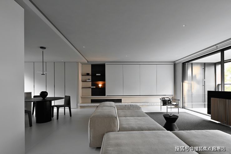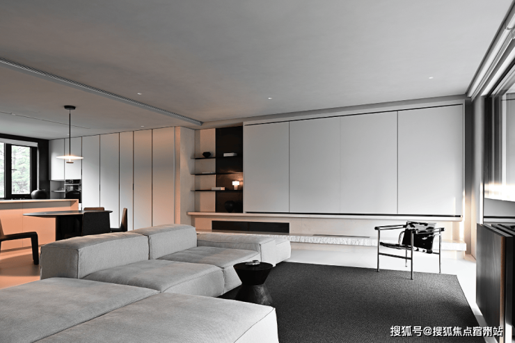 客厅内,主要的色调为灰色,黑色,白色,三种最简单也最高级的颜色之间彼此配合,打造了一座属于高级的空间。