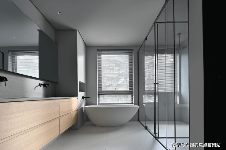 浴室内贴心的做了干湿分离,偌大的浴缸瞬间就勾起了人们对于泡澡的美好期待,窗外的自然之景更是为整个浴室增添了几分美感。