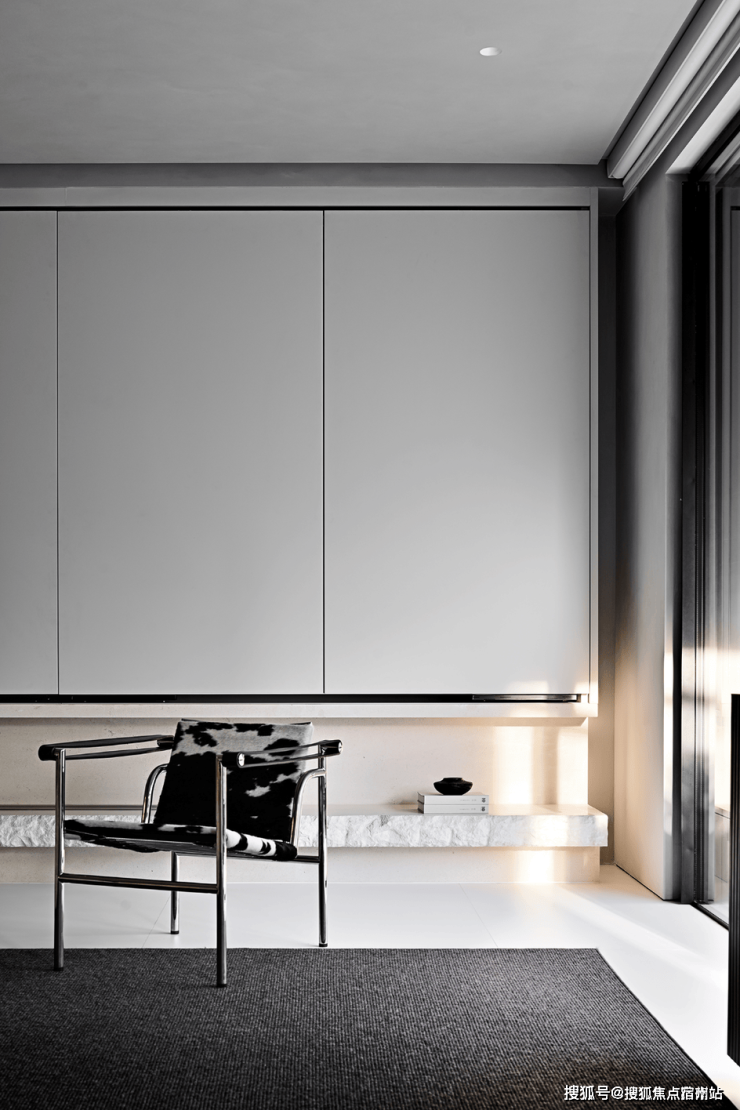 空间内,干练的线条承担起了平衡空间的作用,线条看似是可有可无的存在,但是在这座空间之中却成为了必不可少的存在,线条以其流畅之姿,在空间内游荡,巧妙的将空间的格局打开了。