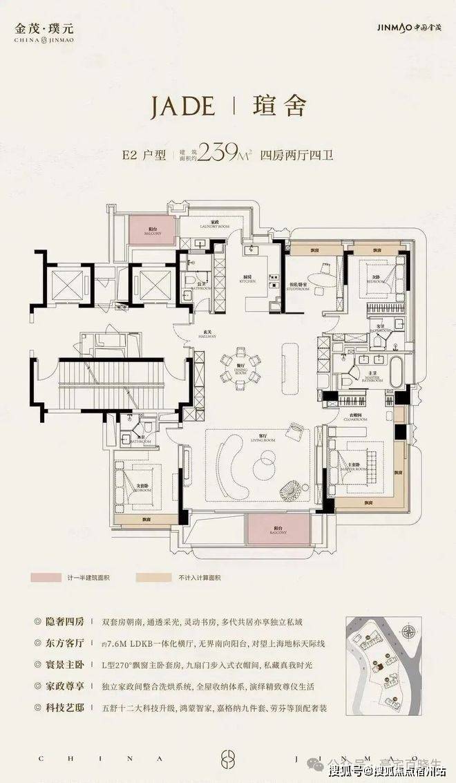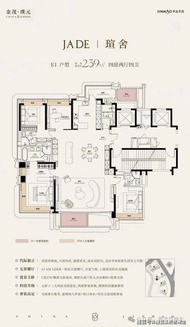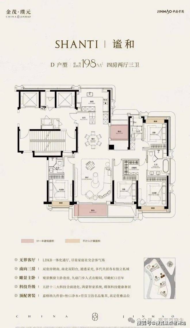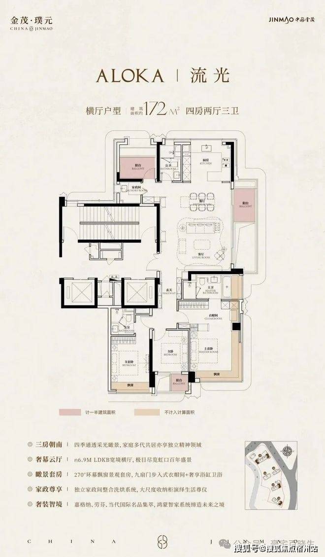 在建面约172㎡户型中,我们可以看到金茂对“三代同堂”生活方式的深刻理解!