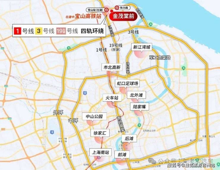 金茂棠前落子宝山站(在建)TOD核心辐射区,占据19号线(北部始发站)与3号线双轨交汇的黄金坐标。