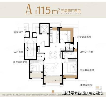 建面约 115㎡三房两厅两卫 :经典改善户型,一梯一户设计,独立电梯厅约 6-6.6㎡,可私人定制,彰显归家仪式感。客餐厅一体化设计,面宽约 4.2 米,进深约 9.05 米,空间开阔通透,连接双阳台,全屋飘窗,采光充足、视野绝佳。主卧套房设计,带独立卫浴、衣帽间与飘窗,私密性与舒适度拉满,满足三口之家或新晋改善家庭需求。