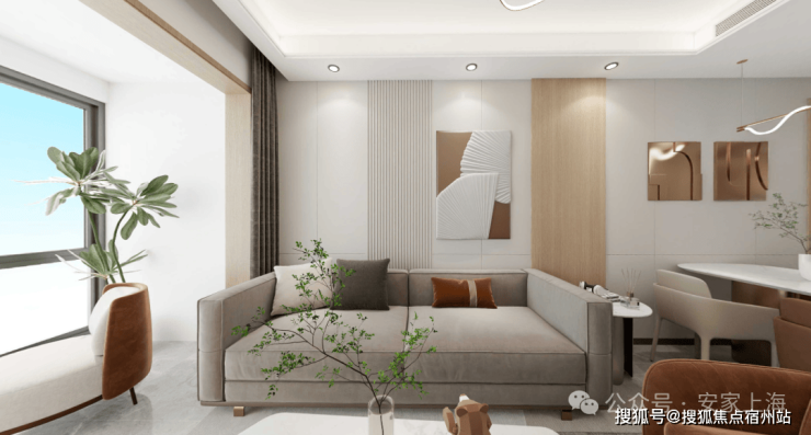 客厅做了灵动处理,可以做为大横厅使用,彰显气派,配上南向的宽景大阳台,显得十分明亮。