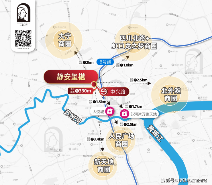 静安玺樾2公里范围内即环拥 静安大悦城、苏河湾万象天地、凯德虹口商业中心等成熟商圈。