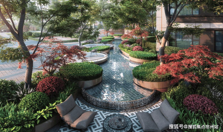 给大家秀一波静安玺樾美学示范区实景图!入口是酒店港湾式落客空间,一棵充满艺术感的造型树,蓝翡翠奢石点缀,提升整体品质感。内部是一座精致典雅的水院,艺术雕塑、喷泉水幕、造型树经典组合,仿若一座海派艺术公园~