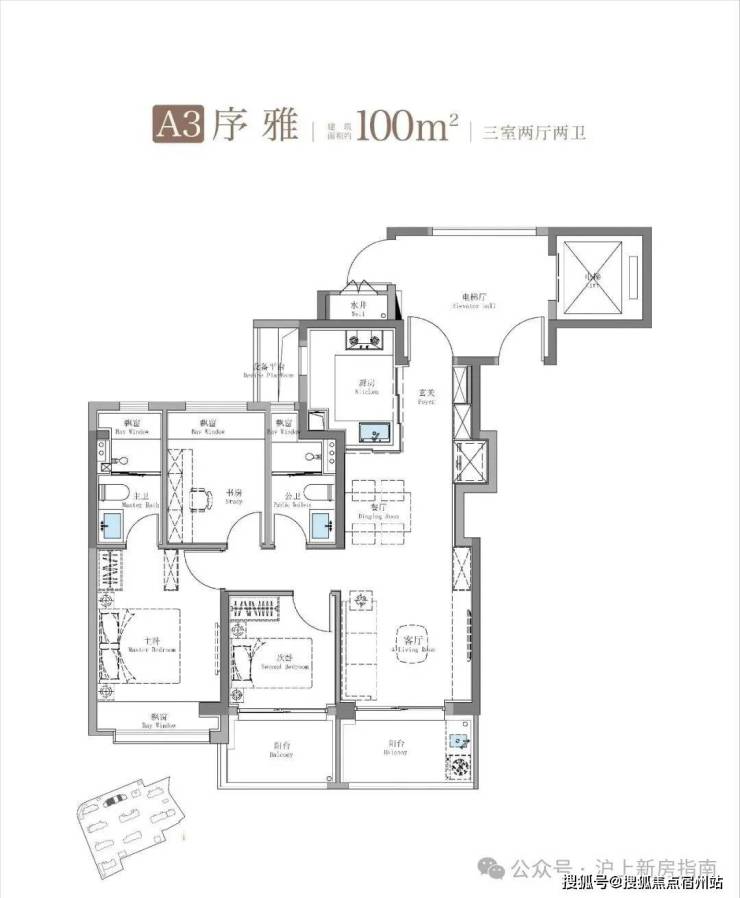 “100㎡小三房”是一个经典的房型与经典的面积,但是小三房的这个“小”字,是这个面积段始终无法摆脱的痛点;在有取舍的情况下,一般开发商会选择保客厅与主卧的尺度,导致次卧与北向卧室的使用面积极其尴尬,这也是“小三房”的由来。