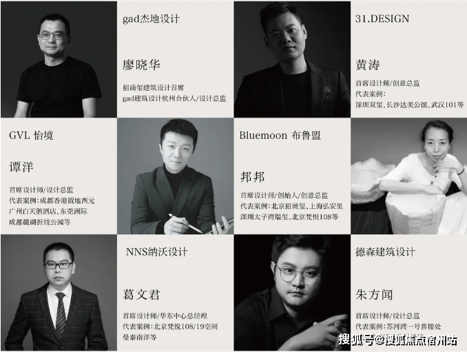聚集享誉业界的团队——gad杰地设计、31.DESIGN、GVL怡境、德森建筑设计、NNS纳沃设计、Bluemoon布鲁盟