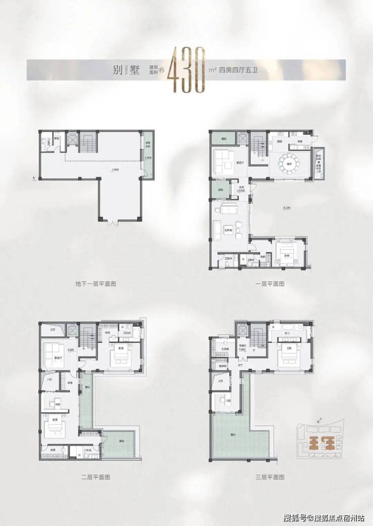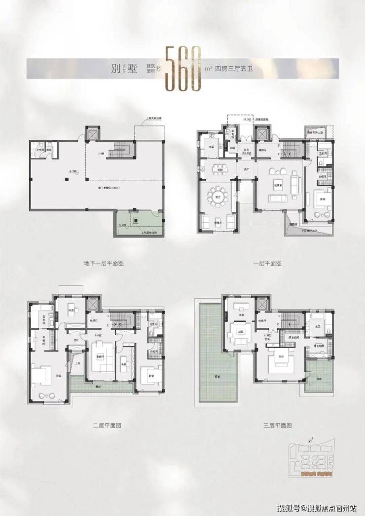 别墅户型从400㎡到694㎡不等(仅备注地上建筑面积,另有地下室面积附送)