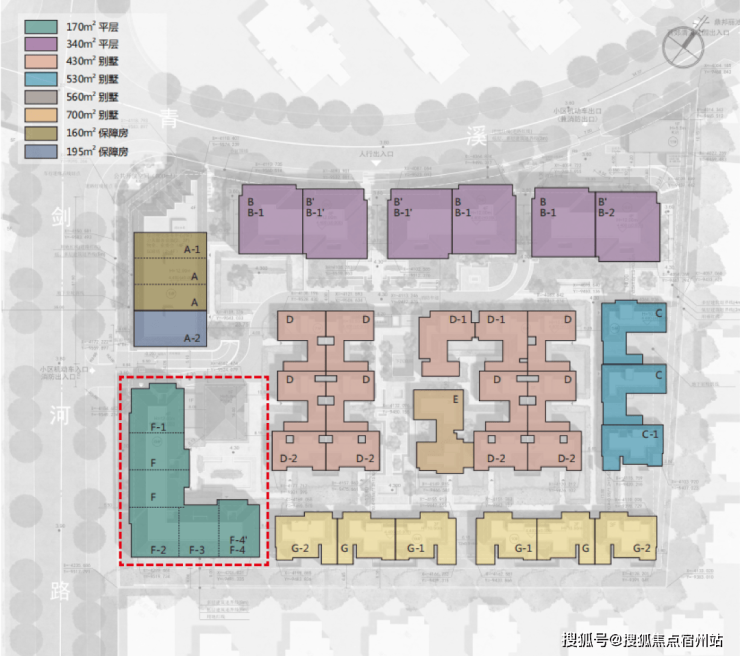 地块西侧北侧以平层和保障房为主,更安静的界面留给别墅。