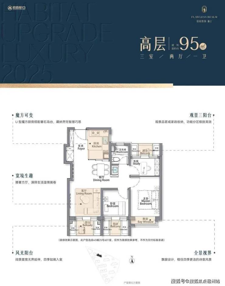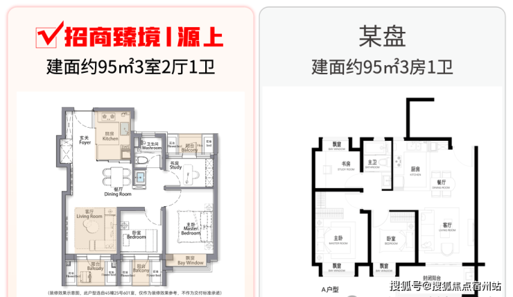 但招商臻境源上的建面约95㎡3房却截然不同,TA凭借着3阳台的设计,✅✅招商臻境售楼处电话:400 - 8824 - 258✅✅给到客户一个真正的三房户型: