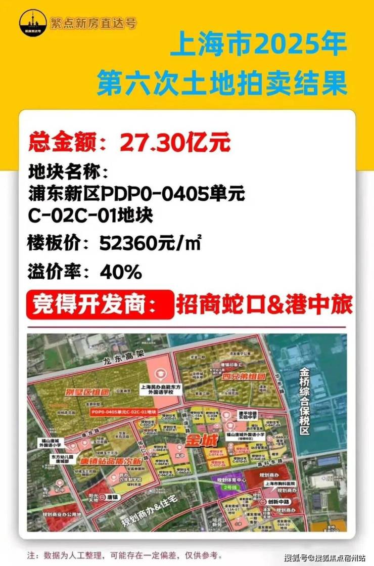 7月25日,在上海六批次土拍中,浦东新区PDP0 - 0405单元C - 02C - 01地块吸引了7家房企参与竞拍。经过62轮激烈竞价,该地块以40%的溢价率封顶,并进入竞高品质环节。