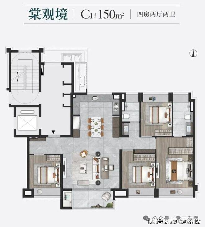 约150㎡4房2卫户型类一梯一户的居住体验,业主能独享一整个电梯厅,加上入户玄关的配置,私密性相当高印象青城售楼处电话:400-8894-638(一对一解答,欢迎咨询)