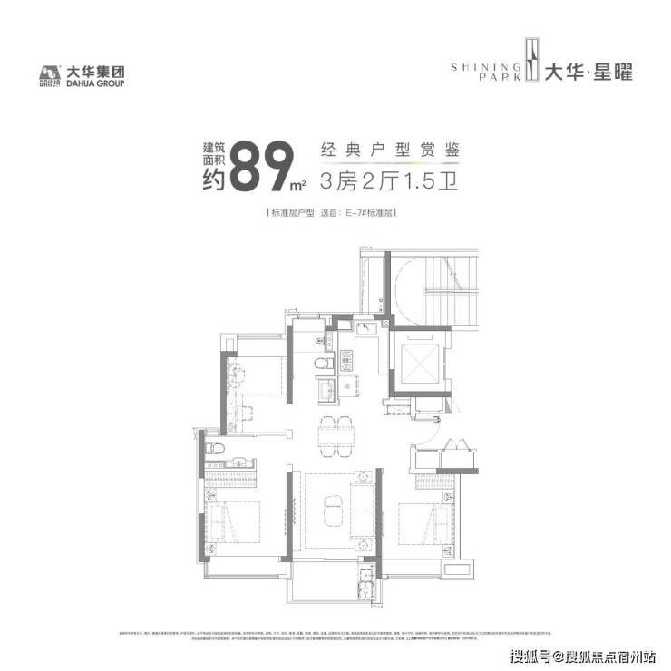 所以虽然是约89㎡的紧凑型3房,但这个户型还是有空间做了 一个1.5卫的设计 ,保证了主人的私密空间,也避免了早高峰用厕的尴尬。