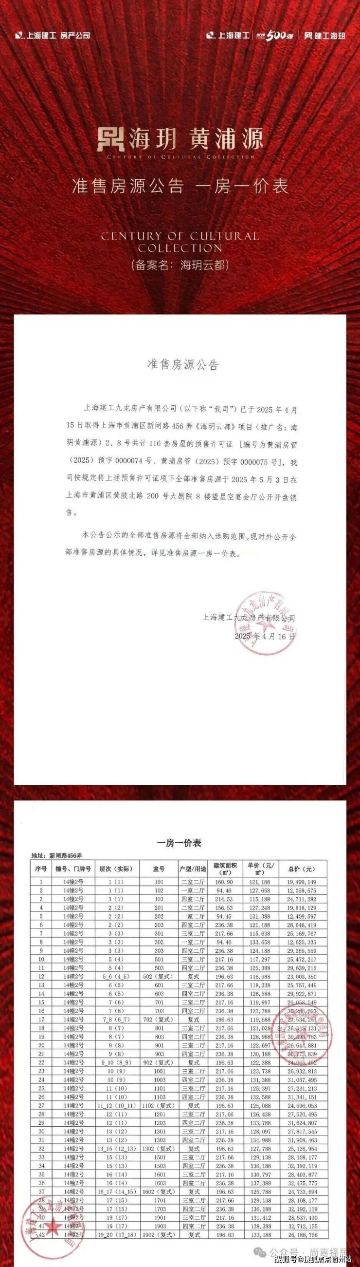 2025年4月迎来最后一批次,加推116套约95-402平高层房源,均价 14.46万/㎡,后面详见“一房一价表”