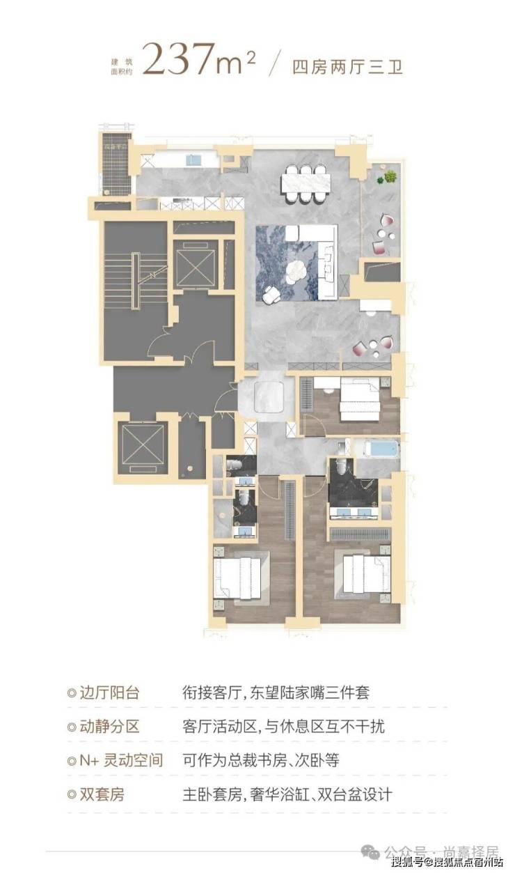 其中3#为超高层,北向可观小区绿化和苏河景观,高区可瞰三件套盛景。
