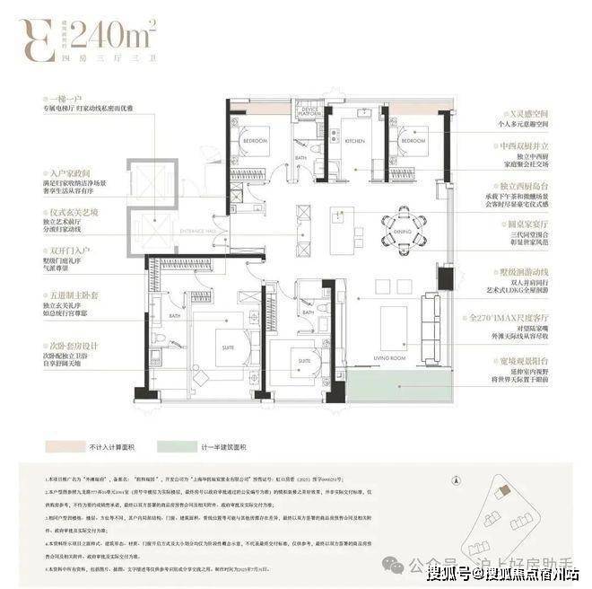这是项目的明星户型。南北L型飘窗搭配无柱化设计,使陆家嘴摩天楼群与北外滩未来天际线尽收眼底-1。开放式大横厅模糊了室内外的界限,站在客厅中央,仿佛置身一幅流动的城市画卷。次卫引入四分离体系,厨房岛台等配置通常仅见于200㎡以上户型-6-8。✅✅外滩瑞府售楼处电话:400 - 1183 - 708✅✅