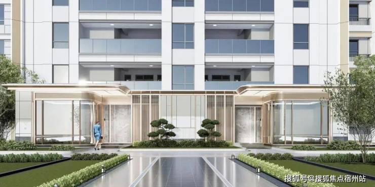 社区入口对标慢奢酒店风格打造,融入高定细节,诸如 酒店感仪式门头+环岛式尊崇落客+迎宾式花园设计+精装地库等。
